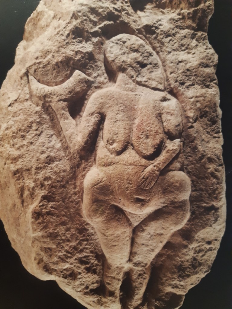 Et que penser de toutes ces petites statuettes de Vénus dans l’art mobilier ou ces représentations féminines, très symboliques dans l’art pariétal ? Les sexes masculins sont très peu représentés. On serait amené à penser que ces divers signes attestent de sociétés plutôt matriarcales mais peu d’indices sont là pour étayer ces hypothèses …